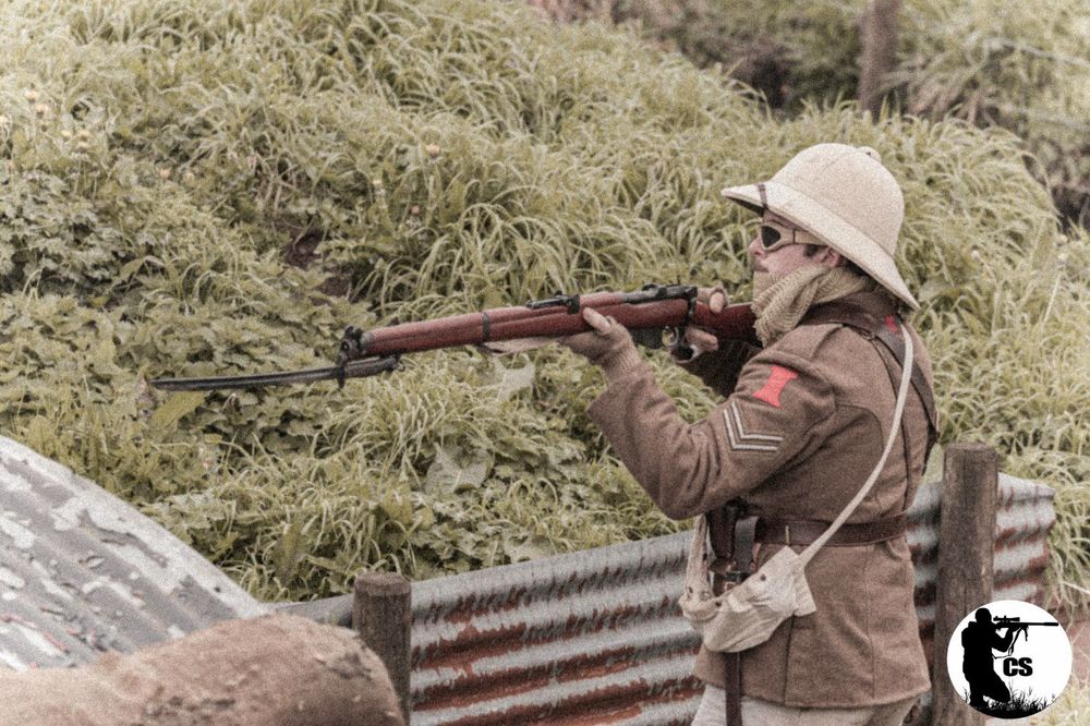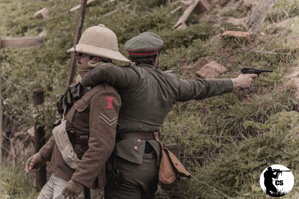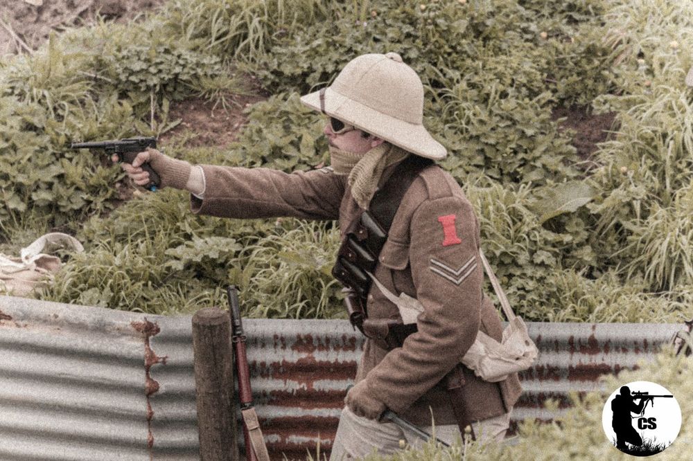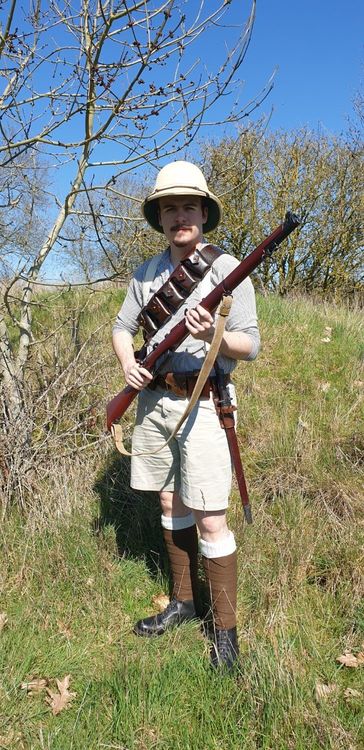 Ran our first game at the Trenches we've been building for the last year the other weekend! The theme was Gallipoli - our fictionalised battle of 'Hellespont', so I was running shorts and Pith Helmet with my WW1 kit... (Yes I regretted the shorts) One of the best moment was being held hostage by an enemy officer... I'd been ordered to guard him, as we had taken him prisoner in a raid. However, during an attack I was too busy killing two of the attackers to see him draw his pistol, no one had disarmed him! He almost made it out of our trenches before anyone noticed, but someone managed to shoot him in the shoulder past me, giving me the chance to grab his pistol! I then proceded to kill a further two attackers with it! (Photo credits to Crafty Sniper Photography) (The full kit, had the tunic on in morning as it was quite chilly)15 points -