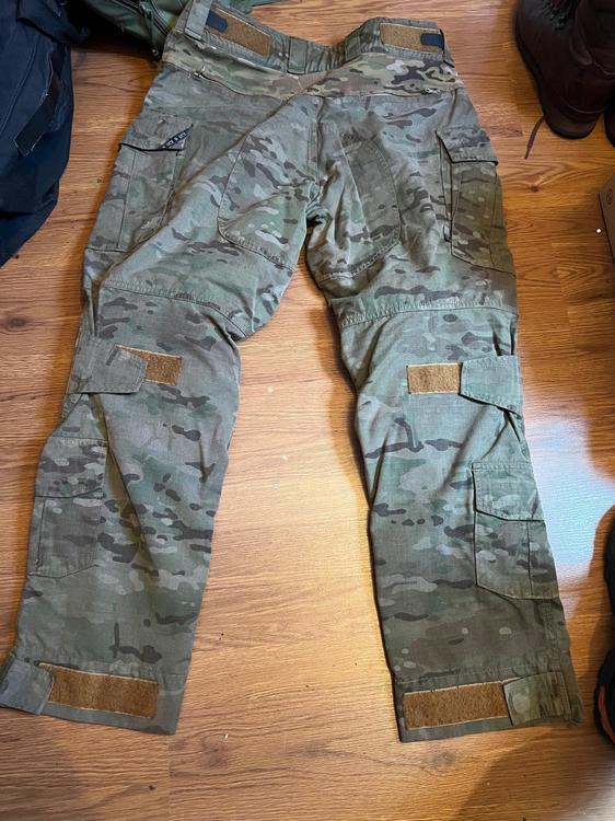 Thinking of selling these trousers not sure what to ask , they are Crye G3 trousers with the genuine knee pads , think they may have been dyed in the past as the multi cam pattern is darker than others I’ve looked at also the Velcro is a darker , they’ve been well used but plenty of life left in them