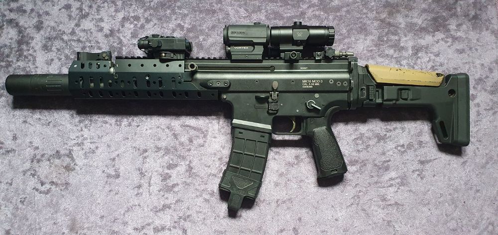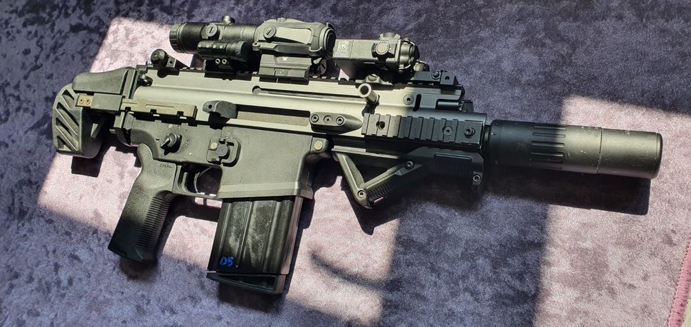 Looking for an appraisal: *WE RATech MK16 Scar-L Open Bolt GBB* - Angry Gun ACR stock adapter with PTS ACR stock (discontinued for WE, so somewhat rare)* - RATech WE Scar-L steel trigger box (all steel fire control group, including the trigger itself) - RATech Aluminium Nozzle with RATech NPAS (comes with the adjustment tool too) - RATech Precision inner barrel 6.01 340mm & Maple Leaf MR 60° hop rubber (IIRC) - Scar outer barrel extension (to cover the inner barrel - can be unscrewed for normal length MK16 outer barrel length for shorter suppressor set up) - Enfield red/green dot sight with lens protector (chucking in for free as it is taking up space) - Beaver tail pistol grip with bottom rubber seal & clone Magpul RVG (both painted and stippled by a previous owner) *The ACR folding stock button is currently a temporary 3D printed replacement. I recommend finding an OEM PTS replacement button or an upgraded one, such as the Deranged one, as I'm not sure how durable this temporary replacement is. The original WE Scar stock is also included, if preferred. It'll also come with any other OEM spares I have. Unfortunately, it does not come with the magazine, as the magazine I have belongs to a friend. A timestamped firing video can be provided. Any ideas regarding value? Ideally after a sale or a trade/px against a TM MWS/AK, parts for those platforms or decent gear, such as chest rigs or plate carriers.