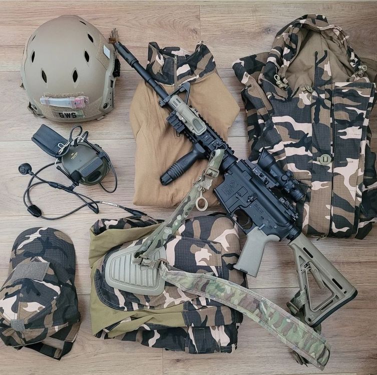 Just want to test the water price-wise, as not skirmished for ages and am not wholly sure if I am done with it to be honest. Attached a pic of current set up. TM 416C - flat HOP installed - lifts 0.3s and above with little difficulty - along with front wiring to MagPul grip and a MOSFET installed (cannot remember which brand). Recently serviced by Crawley Surplus. 340-350 fps with 0.2s iirc. 6 TM Lo-Cap NGRS magazines black 1 TM Lo-Cap NGRS magazine tan 1 TM 416C Lo-Cap battery mag black 2 Mid-cap PMAG style NGRS magazines black TM 416 DEVGRU suppressor and flash hider plus original TM flash hider VFC RAL 8000 folding rear sight plus original TM rear sight