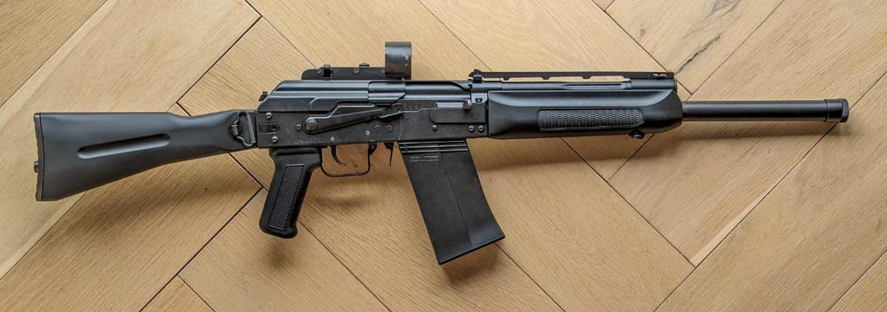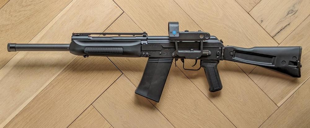 Work in progress SD, not the most authentic but will do the job, makes fitting batteries in easier the handguard is held on by a 3D printed cap which is then pressed against by the printed suppressor. Underneath it all is still the original gun with the tri-lug and the adapter it comes with, with an Acetech Blaster M module in front of it. Will have the suppressor made in metal in the future.