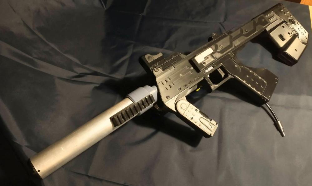 Hello again, Op Venezian, the UK's first dedicated Halo LARP / Airsoft event has come and gone. It was a great event, with some lovely people and fun times. It was hosted at Gunman in Eversly, so a bit of a trek for me. Luckily some Scottish ODSTs picked me up on the way down. I'm glad to say that the HPA M7S performed flawlessly. I really enjoyed using it. It's so damn quiet with the suppressor. It was quite handy when I was playing as the Flood given I could easily one hand it to swing around wildly. The torch was pretty handy in the Flood infection night game (rather inspired and hair raising by the way, very fun). (Credit, Bipocalypse) (Credit: Bipocalypse) (Credit: Bipocalypse) Spartan Jess' episode 1 https://youtu.be/l1x2rKwVcvM?si=2vf9XkYxjTZ1Y2W2 If anybody's interested in attending next year, I can shoot you an invite to the discord. We actually had a lack of people willing to play URF (rebels) with minimal Halo gear which was surprising. Credit: SpartanJess I did finish the Reach backpack in time. Unfortunately in my sleep deprived rush, I managed to spill superglue on the cordura lid. I've yet to take decent photos, so I'll save that for another post. I've since started two new projects. Both very much WIP. One for later when it's fiscally feasible, a support weapon / emplacement for next year's event. Halo 2's M247 mounted machinegun. It'll require an order of steel and a lot of filament. It's 1.55m long, using a V3 gearbox and 15mm steel box section spine similarly to the BR55. I would use an M249 gearbox, but they're 3x the price and not very readily available. I'll build a tripod for it also. I've shelved that for now after making a start in favour of a project I can do right now. The MA5B. Powered by HPA, using basically any engine with a universal plugboard. Right now that's the Scalar engines and the Polarstar F2, maybe the Jack as far as I know. I am looking into the very real possibility of making a version that uses the P90 V6 gearbox eventually. The stock would have to be extended (easily done), the magazine would need to be different (smaller), and the gearbox would need a different cylinder head, nozzle and custom 3D printed tappet plate. I will be looking to sell the files to this as a sort of trial to see whether I run into issues with people being untrustworthy, and determine if I want to sell files in the future. I've designed it so it can be printed on standard sized printers and I'll be using steel rods only with no drilling of metal required. It will be using the tachyon round counter, and I'll make provision for either a custom torch to be used or a tactical one ( Fenix PD35 for example). Short-ish update today. 'Til the next post. -