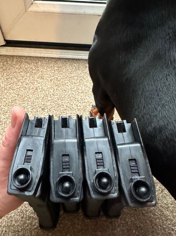 Due to moving to sniping I will be selling my aeg’s and accessories but unsure what these are worth. I have 6 of these they feed flawlessly but two of the mags the followers don’t pop up and engage the bolt stop after last bb, I haven’t got around to seeing if I can fix this yet but they both feed fine. I also have the original packaging far all 6, including top clips, base plates and genuine Magpul ranger plate for each. No idea what I'd be looking for them, but they took me a long time to source and cost about £50 a mag not including the ranger plates. Thanks Jim