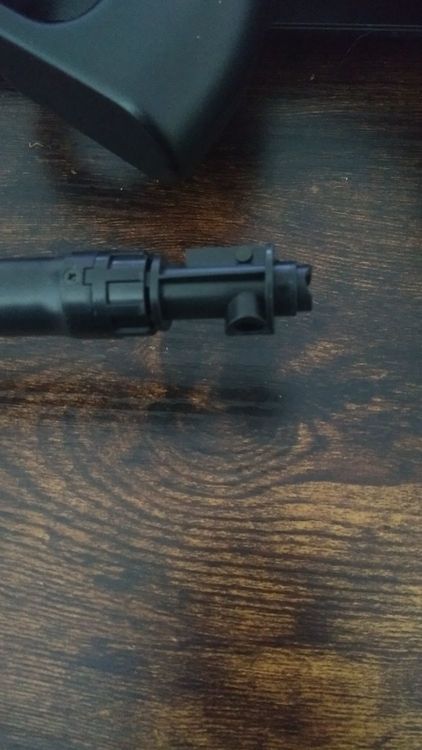 I was showing my AEG off to my brother when something snapped. I think its the part of the barrel that connects to the hopup. You can see an indentation at the end of the barrel that probably shouldnt be there and you can see the hopup adjustor just hanging out and not really attached to anything, I'm literally afraid of it falling off. I don't know much/anything about Airsoft mechanics I just run around and pewpew and so far have been really lucky I suppose...
