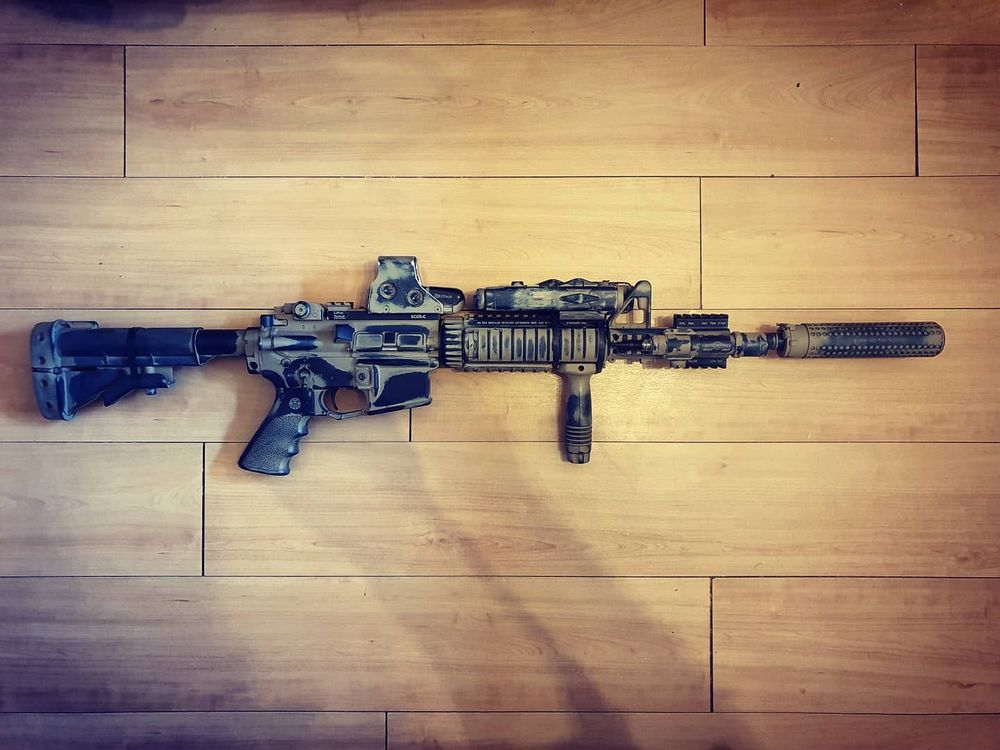 3 days without an MWS post!? ? This will not do! I was always on the fence about painting this rifle, but after fitting the battered and bruised 551 I knew the unmarked black paintwork looked out of place! So after a bit of time with some khaki Krylon and thinners this is the end result. It's not easy to replicate something that would normally occur naturally but I'm happy with the end result. Although it's hard knowing when to stop! The beauty of this though as it's very easy to go back over it and amend anything you don't like. All it needs now is a suitably weathered weapon light and laser unit.