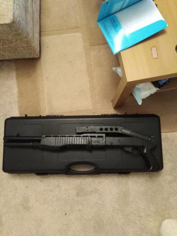 Nope. It's a double Eagle marui clone spas 12 trishot with an equally rare KTW foldover stock modified to fit. It's actually the second time I've owned this. I originally fitted the stock and sold it with my GBB spas 12. Noone will tell the difference and it was a 1/3 of the price of a marui one, with no real difference. So it's a better gun to actually skirmish with than a TM one, not worried about damaging it. I used to own a boxed tm one with the crook that had the tightbores and uprated springs. That shot well. Biggest airsoft regret was selling it.