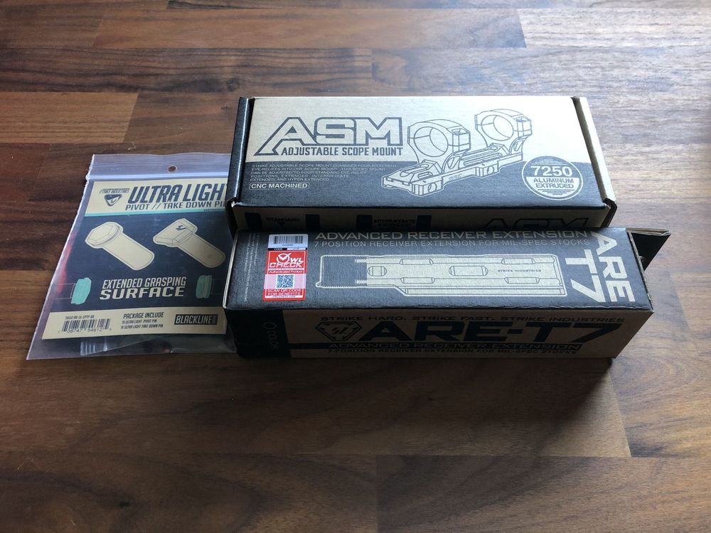 Got a care package in the mail from Poland today so I am finally able to "finish" my Strike Industries build . Was only missing the takedown pins, buffer tube and adjustable scope mount, really happy with how the build turned out!