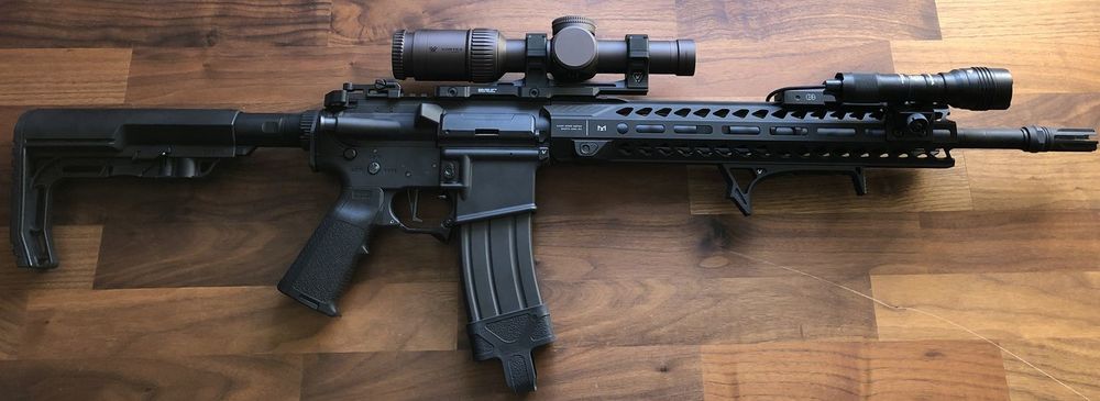 My Strike Industries build so far. Decided not to sell the real steel parts after all as I am working towards my license for real practicing with real firearms. So I decided to buy a new MWS to fit it all too. As soon as they are back in stock however I will be buying another MWS to make a Block II FSP build (the one I was going to do instead of this ). So here it is, my "Strike Rifle", not finished yet but for the most part it is to my liking. Only upgrades I'm definitely going to do is get an SI Forward Assist, an SI buffertube and the SI Fang triggerguard and perhaps a set of real magpul pro mbus'.