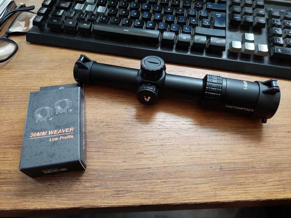 First Aliexpress parcel arrived today, so hopefully the others will arrive this week too. This one was only £91 including taxes because of the sale they had last week. Looked through it and it's crystal clear, but need to get a battery for it so I can see how the illumination works. Zoom looks nice, though I can only really tell this once it's on the rifle because holding it my hand on 6x zoom is interesting, but the reticle is exactly the kind of reticle I wanted. Came with exactly the scope mounts I was going to get separately too... and they're too low so it won't go on my m14 as it rests on the rear iron sight, so will need to pick up some mediums ? -