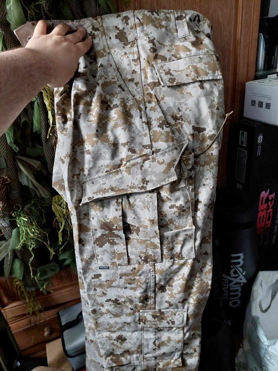 Of all the places I could've got them, Hong Kong was not a place I was expecting to find trousers in my size. Picked up the last pair they had on WGCShop anywhere near my size (only had Large-Long, didn't have any larger sizes in Long length unfortunately), but they're a bit tight around my fat waist at the moment. Good thing is they fit around my unreasonably sized legs and they're long enough, so all I have to do is lose weight and they'll be great. Finding desert marpat stuff is a nightmare already without me being 6'5 and chonky, so I'm glad I picked these up. -