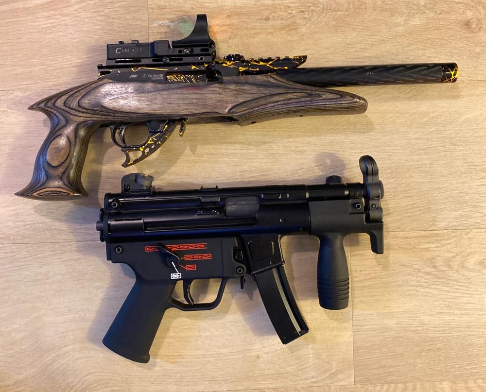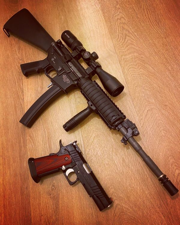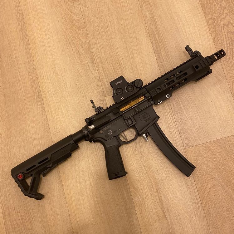 Saw a comment earlier on about how the A1 Raptor or the SSQ would be better than a stock KC02. For anyone that cares, this is nonsense because: •The Nov/A1A gun is made of the cheapest, heaviest and most brittle pot metal. There’s the leftover redundant front section from the A1A’s take down function, meaning the only thing that centres and retains the outer barrel assembly is the rail. •The “improved” tdc wheel has no tensioner. It’ll happily just adjust itself from the action of the bolt. •The A1A banana mags are infamously leaky, potential hand grenades. The KC02 mags are indestructible. •The Novristch team left behind several redundant parts from the A1A’s trigger box, one of these being the full auto sear. The split sear system in those full auto packs is terrible and I can see many of these guns refusing to fire in semi auto soon. • The roller bearing on the hammer is going to destroy the Chinesium bolt carrier on the SSQ22. Finally, the feedback I’ve had on the feel of the SSQ is that the quality of the plastics is comparable to a cheap Nerf gun. Stock KC = much better base gun for a build. If you’re curious about the Novristch, the sales section will be full of them soon. Rogueworx are designing a replacement hop unit and nozzle for this dumpster fire. Give it a year or so and the SSQ may be a good platform As a Brucey bonus for getting to the end of my wall of text, here are my own rather naughty KC02 builds. @Speedbird_666 Buy a KC, slap it in a Ruger stock and stand out as the guy with the all-American plinkster at your next game day