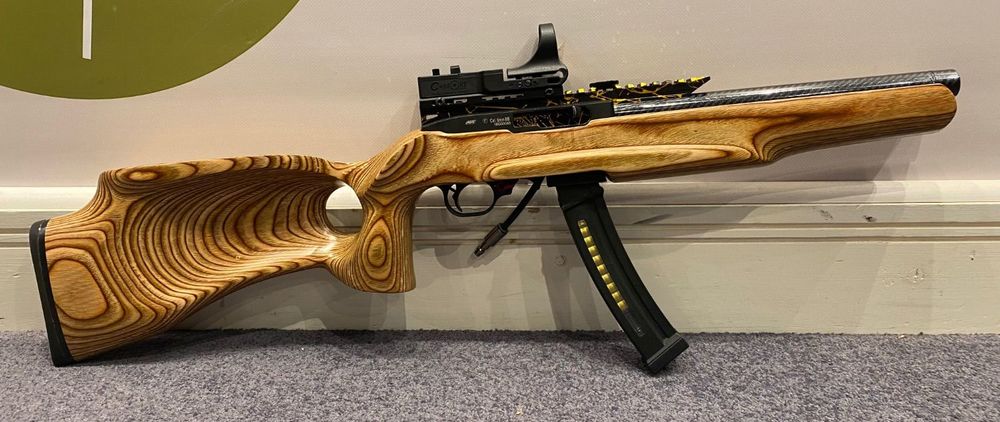 It’s pretty subtle from this picture, but that’s a 400mm tapered barrel made to mirror the bog standard Ruger 10/22 factory barrel. -