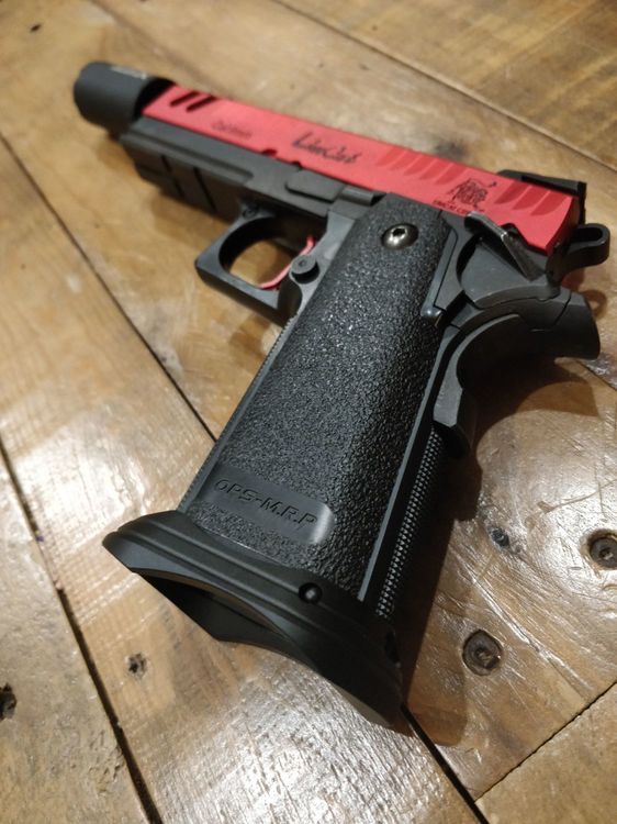 I think it's finished! Top pic was from just before I used it at Halls CQB site. Which is where I played with @Steveocee and the battlecat gang ? (also got my trigger and rear sight from Kyle of Hicapa Hub) Kyle's not long dropped off an Edge Magwell and I didn't hesitate in fitting it! I'm really pleased with how it looks and even more so oh hell well it performs! I'll be leaving my MTW at home for my next game at Leicester Gaol and will use my AAP-SMG and my Hi Capa!