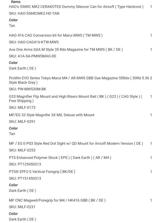 I basically bought another MWS is parts lol but it'll be better than using stock part's and having a dust collector plus i can paint the colt because it's engraved not lasered. But swapping the stock/barrel for a new one as the stock was uncomfortable and a 330mm barrel with tan bucking and super6nub will do fine as a hardcore gbbr backup.
