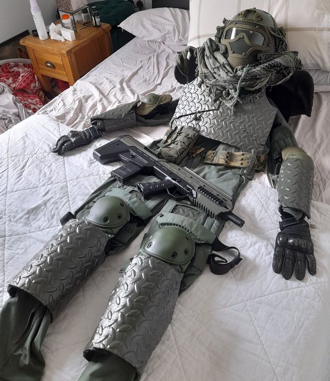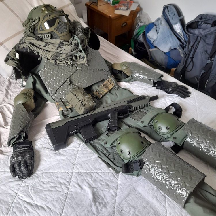 Eezer's Mk1 Space Marine loadout ready for its inaugural outing this Sunday. Forget Master Chief... Disaster Chief is about to hit the skirmish field. One of those kit-on-bed shots as tried selfie which was shit. Eezer G -