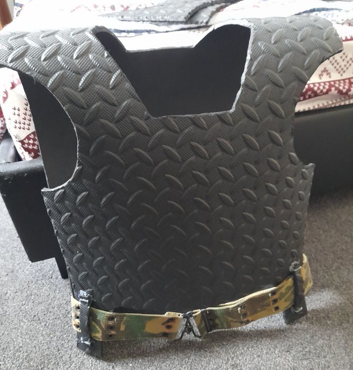 Thanks @Rogerborg. Think I'll secure it with something additional as you recommend. The belt was a unique idea as it kills two birds with one stone; saves any webbing,straps, etc and allows a medium to carry pouches if required. Wife's out shopping just now, hopefully getting velcro bits from craft shop, so should get the arm and leg bits done today too. Also considering some sort of heroic chest and back additions to make it look more beefcake. Found a better solution for shoulder pieces in the form of a pair of old kneepads with knackered straps. Think I'll velcro them to my sleeves and hey presto, low effort shoulder protection. -