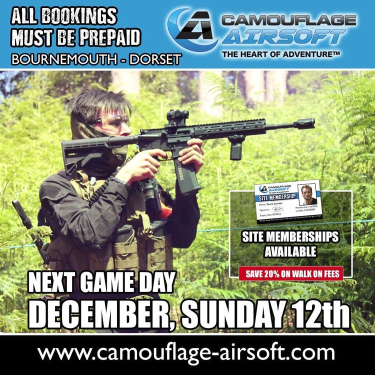 GRAND OPENINGBOURNEMOUTH AIRSOFT SITEOur first airsoft game will be at our Bournemouth site, on May 16th 2021. We have great value rental packages and welcome all walk on players, pre booking is required, follow the link below;Or call us on: 0800 328 4112