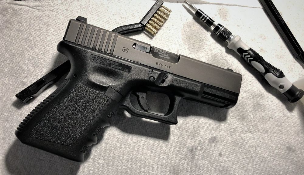 Another jigsaw puzzle Guarder G19 - steel edition! ---------------------------------------------- Really like the forced barrel tilt and 15mm cylinder that was added in the G19 design. What I didn't really like was the velvety matte black finish that came with the steel slide, so I took a brass brush and some polishing compound and carefully carded most of it off. Not sure how this will affect the corrosion resistance (if there's any left at this point), but really like how the slide is a lighter shade of grey than the frame much like the real steel models prior to the new deep black nDLC finish. Referenced pics of heavily used police trade-in Glocks that have a worn-in tenifer/frying-pan finish and tried to match the dark grey and metallic sheen. Not quite 1:1 but still like how it turned out. Now to get some more weathering on it by using the sh*t out of it? This is the Guarder finish that comes as stock. Guarder calls it "P-process" but I've read that its some form of QPQ finish. It's a flat black/dark grey and the texture feels almost parkerized. If there's any metal experts out there please educate us on what this finish is. Below is an RS example of a heavily worn police trade in gen 3. The light grey hue is more from the reflection at certain angles On a side note, a company called RST does produce a true-to-spec tenifer finished steel slide for Marui G19's (seen below) but for the price (£100 vs £1,000) I don't think you can really do better than Guarder..