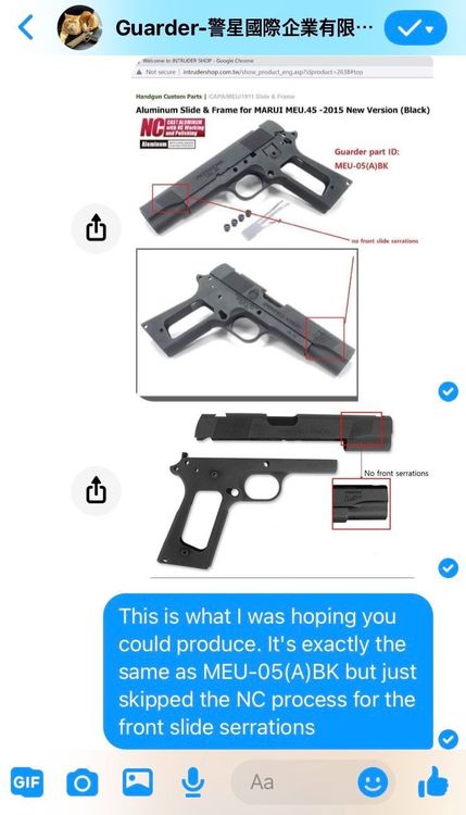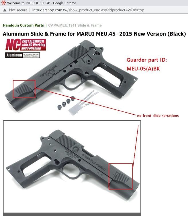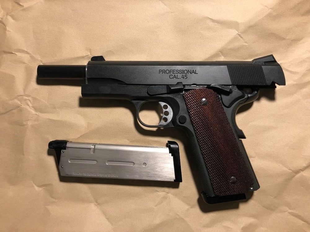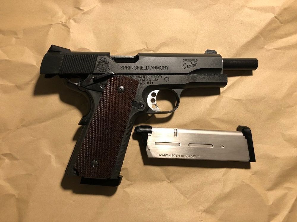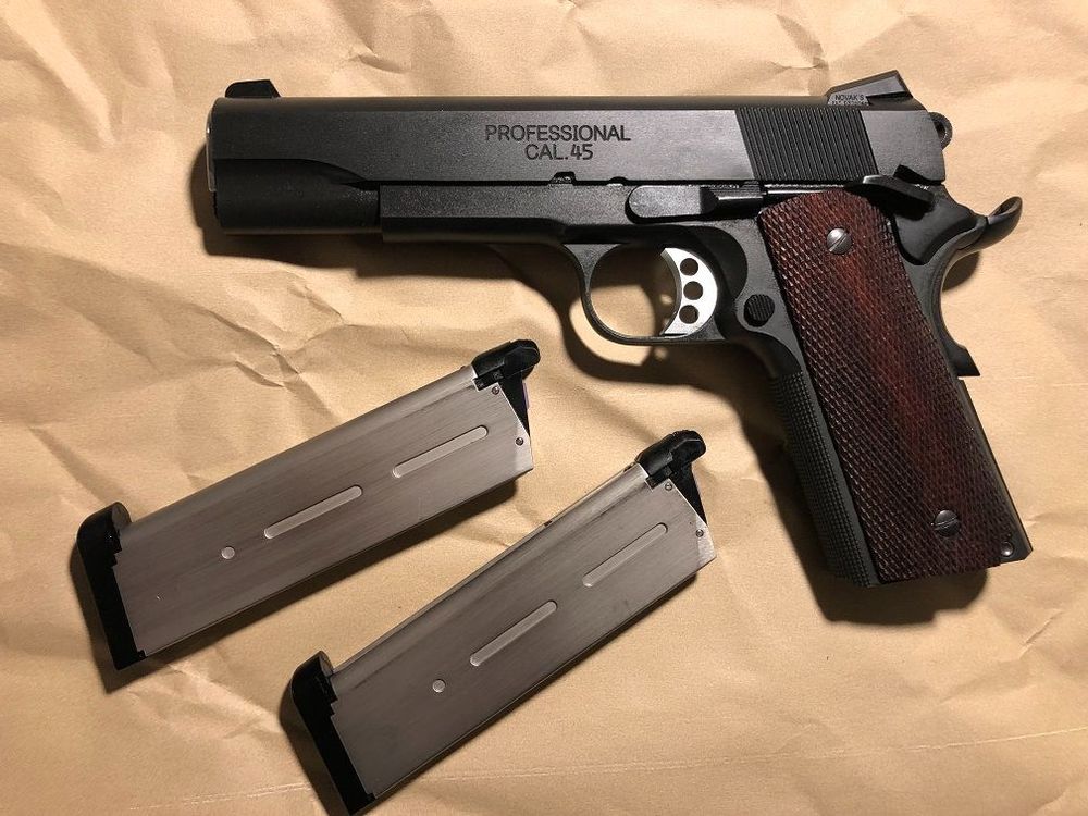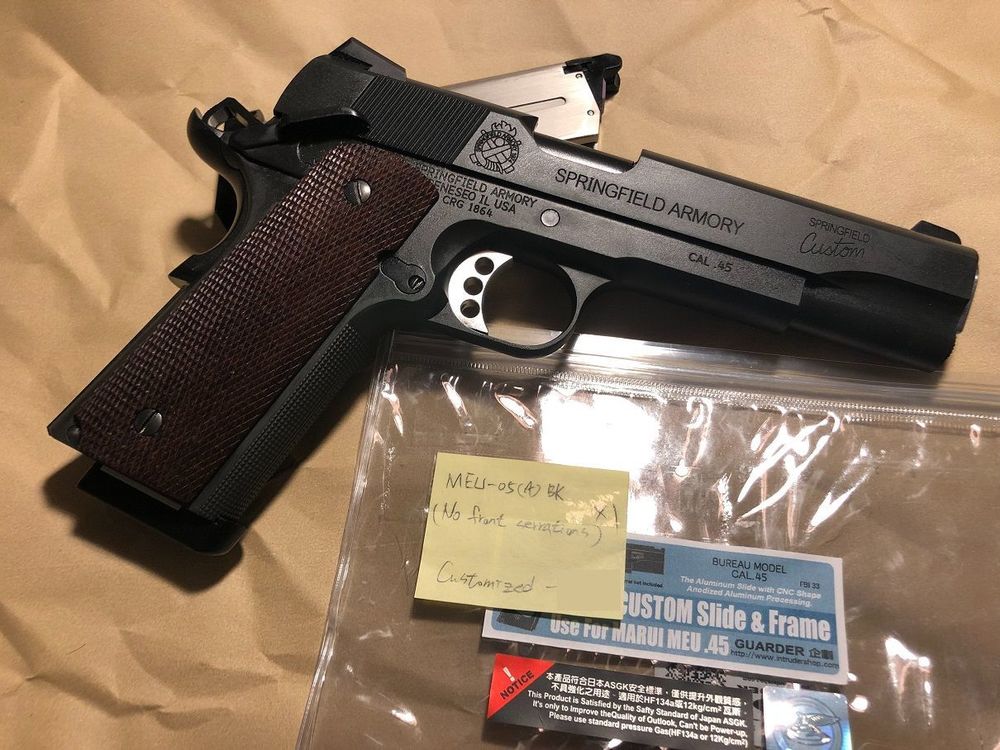 Took almost a year and a lot of planning to source everything, but finally finished my grail build - the Springfield Armory Professional ---------------------------------------------- Fun fact : The late-model versions of the MEU such as the Tokyo Marui or Guarder replicas are based on this version of the 1911. The USMC took base model Springfield Professional models and modified it to fit their own requirements. These included things such as adding the lanyard loop and forward slide serrations. The photo below of an actual MEU pistol shows how the slide sports the forward serrations added by the USMC's armorers, which was cut over the "custom shop" lettering from the Springfield factory. Another interesting thing is that the slide and frame seem to be a different color. This was because the frame was the original "Black-T" finish from the factory, while the slide was refinished/parkerized after cutting the front slide serrations. I really wanted the original professional model (RS example, left), but the only similar option available without the front slide serrations was the Guarder Bureau model (RS example, right). They both are essentially the same gun, but the latter was a marketing ploy by Springfield after they won the contract for the FBI HRT's sidearm. They slathered a bunch of FBI lettering and even used FBI in the serial numbers to really let you know this was a cool gun chosen by the FBI. After about 40 or so of these were manufactured and sold as the "Bureau Model" the FBI put a hard stop for their name being used in branding. Due to this, these were extremely rare, and the RS ones can go for 5,000+ USD; I assume that Guarder chose to produce the Bureau Model instead of the bare-bones Professional due to this rarity and backstory. But still, I really wanted the original model since both the USMC's MEU and the FBI's "Bureau Model" both were based on the Professional. Which brings us back to the fun fact in the first photo: The MEU is the Professional model, with forward serrations added - This gave me an idea. If the forward serrations were skipped from being added on Guarder's MEU slide, it would be exactly what I wanted. So I pitched this idea to Guarder, with fingers crossed that they would accept something like this. And by some miracle, they accepted to do the custom order! And here it is! The only airsoft SFA professional. It was such a long project to complete I now can't exactly remember why I wanted a Professional in the first place, but extremely happy on how it came out. Everything is correct to original Pro model specs, but I never could source the magwell.. Any SOA fans out there? While researching for this project I found that Jax teller's main sidearm was also a Professional