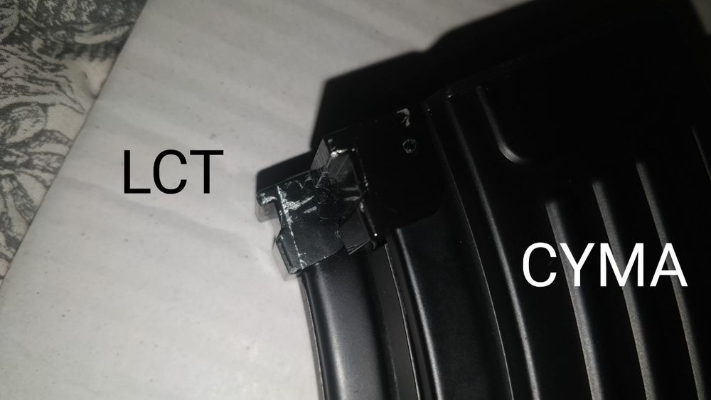This struck me as strange as I had read both on this site and others that CYMA magazines were amongst the best to get for ak-style guns. It seems there are some slight differences between the LCT magazine that came with the gun, and the CYMA ones, which again is odd as my mate's Galil magazine even fits better.