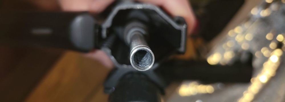It's the stock g&g plastic hop and stock plastic nozzle, I will check for any burrs when I get home but surely that would effect the trajectory of the bb and once the barrel is clean it is laser sharp accurate. I have used vorsk .25 blaster devil .25 and some .25 tracer rounds all have had this issue. When I cleaned the barrel out on site the residue came off like a skin in bits -