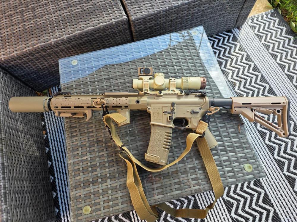 My first AR platform is my take on a KS-1, using an EMG/Ares SR-16E Mod 2. Yes, the optics are wrong, but I don't have the £6K needed for an actual Vortex AMG and there's no replicas out there yet. The colours are also off, but give it a few years and all the issued KS-1s will all look like this ?. All told, I'm happy with it, despite the dramas I had getting the base RIF. I hope it performs well enough. @PopRocket123 I said I would win you over with my next project. So am I getting better? ?