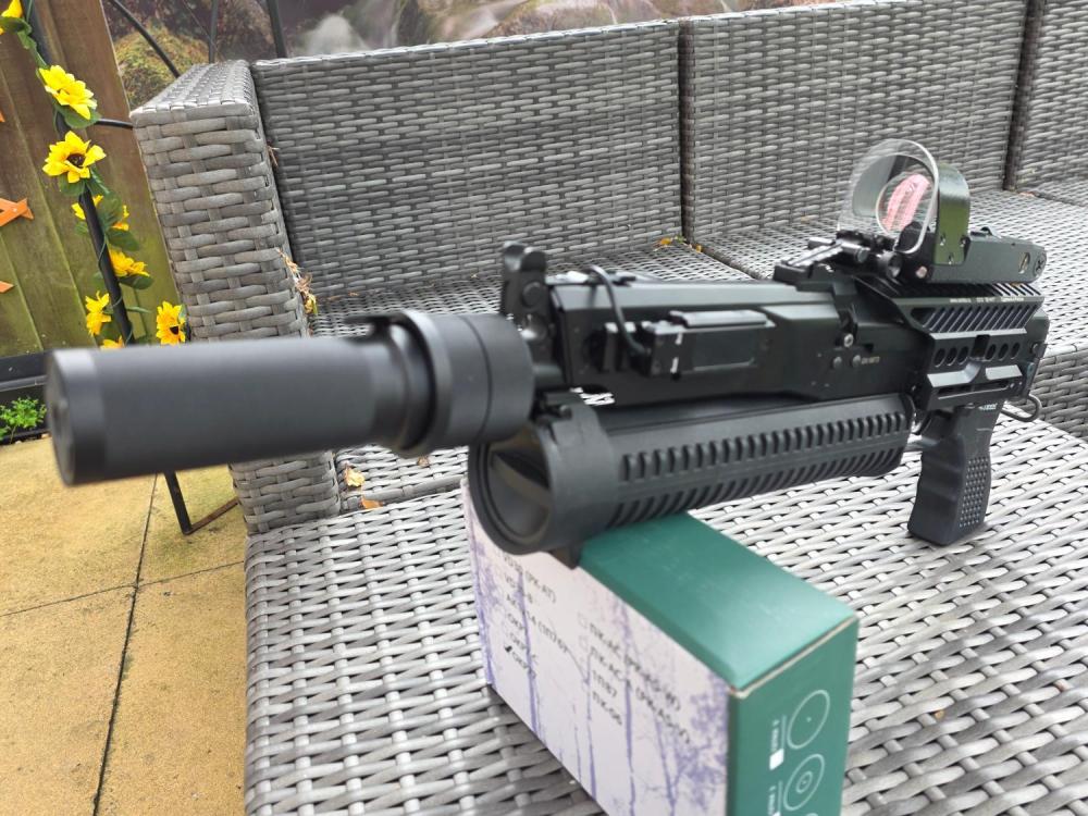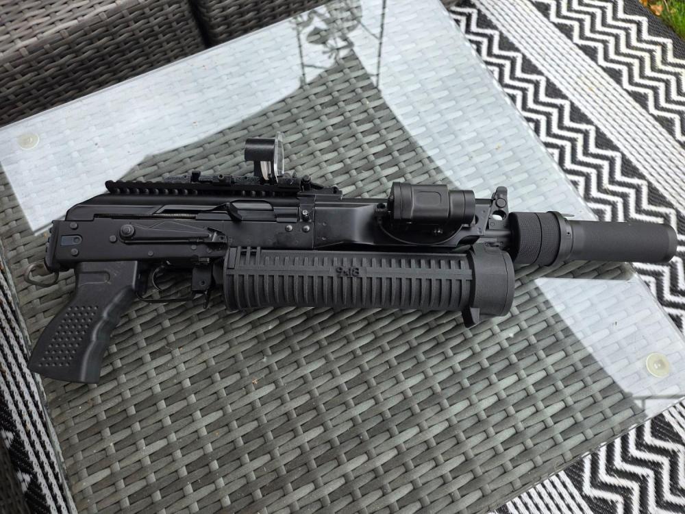 The RIF I wanted so bad, that when I joined these forums 20+ years ago, my username was 'Bison Hunter' ?. I got a custom made from a TM Beta Spetsnaz but it wasn't really skirmishable. Then I quit the hoppy and came back 15 years later to find that Bizons had basically been and gone... until Patrol Base got some stock in at the same time I got a work bonus. I've had it 3 weeks and decided I wanted to remove the stock completely and cover the exposure at the back. This required an adaptor that itself required some angle grinder attention. But now with the RK-3 grip, B-13 mount (both with funky Russian language on them), and PBS-1 can, it's almost my dream RIF. In lieu of a decent Kobra sight, I have a C More sight on the way, so the nasty one on here is a placeholder. First game on Sunday and I just can't wait! ?