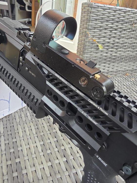 My third RIF post this week... It's been about 30 years since I first wanted an airsoft Bizon and thanks to AliExpress, the final piece arrived today, nearly 2 months after ordering: the OKP-7 RDS (which came in a suspiciously Russian box, with Russian instructions 🤔). I've tried to keep it as authentic as possible by using Russian kit and Zenitco repro furniture. Currently clearing every room in my house like some bat-wearing ninja. 😄 Parts list: Cyma PP-19 Bizon-2 AEG Platinum gearbox, Laylax 6.03mm barrel, ML bucking and nub OKP-7 red dot sight, flip-up lense protector [5KU] PBS-1 mini suppressor Painstakingly fitted front rails at 3 and 9 [WADSN] K-2P flashlight [5KU] Zenitco B-13 optic mount [5KU] Zenitco PK-3 grip [Hephaestus] (modified) Stock rail adaptor