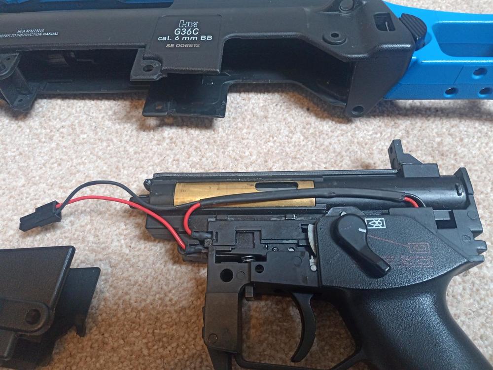 Picked up an old G36C+ a classic 'Bag of Bits' from a friend for £40. The rif seems pretty solid, nicely trademarked, and is marked with UMAREX licencing details on the magwell. Shoots quite nicely actually at circa 1J. I've been researching who the OEM could be, as I'm quite tempted to give the gun the love it deserves, and a bit of searching indicates Umarex have used a plethora of OEMs over the years for their G36s, including Cyma, JG, Ares, S&T. Does anyone know who the OEM is of this particular version? The gearbox is black painted metal - which makes me think it i possibly JG? If so, I'd be rather pleased! And if so, anything that I should look to swap out/replace for performance and longevity?
