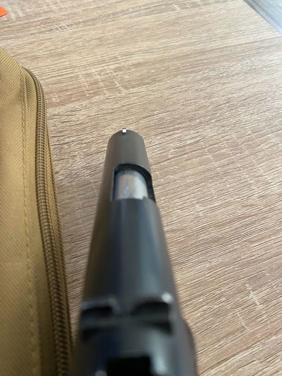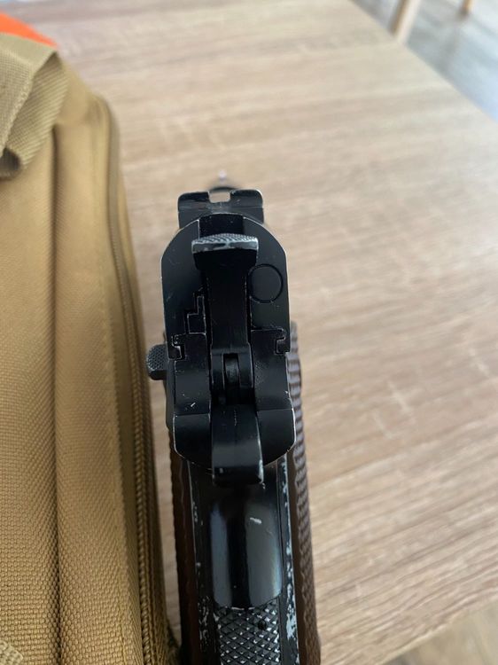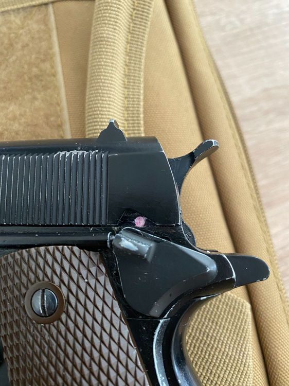 5. Made some minor changes, while still waiting on parts from overseas. Filed the rear sight out to make a better window 2mm to 4mm wide, made the front sight slightly more aggressive in the back for the white dot, will fix the minor bump. And drilled out a safety indicator, painted it red but was alittle too dark, currently just dabbed over in white before I touch it up with flouro orange.