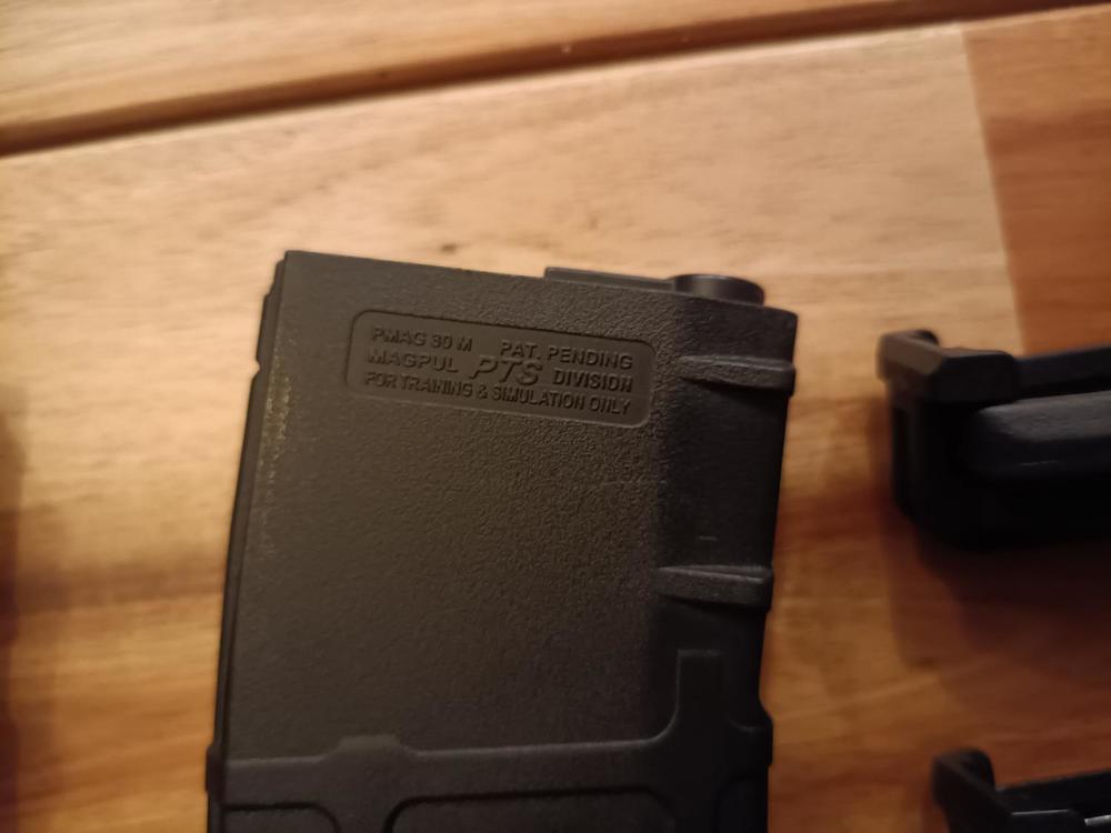 Hello everyone, I recently bought a PTS Masada and these magazines came with it. As I understand PTS PMAGs are out of production and (possibly?) of interest. I'm looking for more information about them and a price range at which I could sell them, I'm not planning on using them. Here are the pics, there are 6 PTS PMAGS with their original pieces plus ranger extractors (tan ones are Magpul, black ones are of unknown brand), tested and all feeding perfectly: Plus, there was another PMAG 30 which I think was the original one from the Masada box, it is slightly different: This was modified by the previous owner and I had to rebuild the plastic near the exit as BB's used to get stuck after his intervention. This one, too, has the extractors. Thank you in advance, cheers