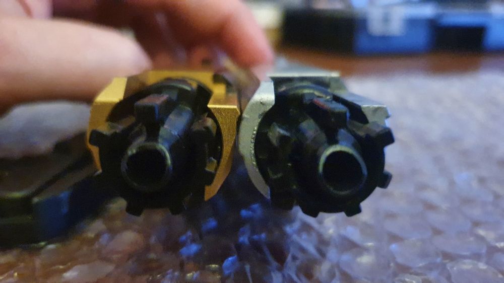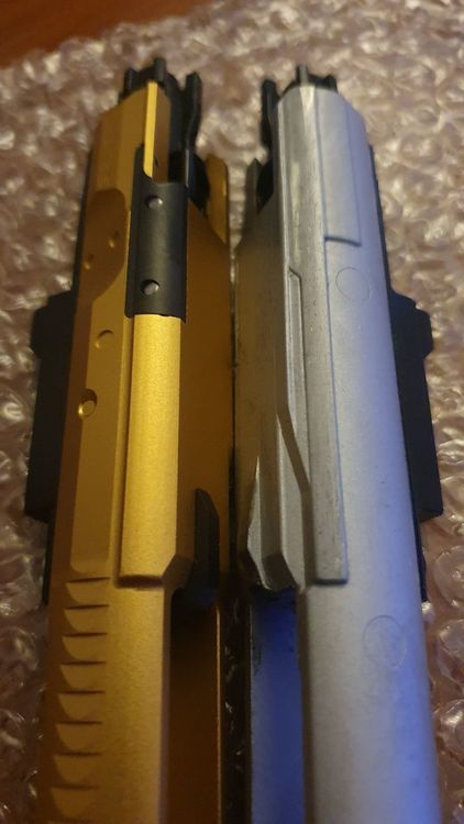 The one I think you are refenrencing to is the OEM one ;). Silver = TM stock (bruised, scratched and hammer assist literally hammering itself) Gold = G&P (not even the colour/finish is scratched) Also: my stock hop-up unit was all wobbly and only held together with one O-ring. It is forced shut by the barrel adapter but it didn't seem good enough to me.