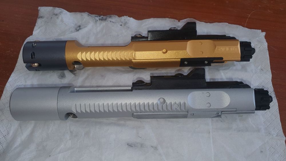 Answering as many as I can. Let's go. Pros of the Mags: The ProWin EVO mags, hold 50 rds instead of 20 rds (MTR16) mags. They hold more and stronger gas than TM OEM mags without any modification. They are noticeably lighter compared to even the short 20 rds MTR16 mags. The gas-intake is on the back instead of the bottom of the mag which let's you reload faster in the heat of battle since you can simply let them fall instead of having to immediately stow them away. - Granted, this is not necessary and I rarely had to do it so far but at least I have less worries when I do that. Pros of the G&P bolt carrier: It is noticeably lighter than the OEM one which let's the carrier travel faster. It is reinforced in all the places where it should be i.e. the hammer assist is steel and does not deform over time. The stock one already deformed after only firing the first couple of hundred shots. - And it is continually deforming which will inevitably lead to a serious malfunction at some point in the future. Bolt catch assist? - Same thing, made out of steel instead of aluminium. The nozzle assembly's performance is more suited to fit international energy limits. Mine shoots consistent at 1.4 joules with the nozzle G&P ship their bolt carriers with compared to 0.98 joules with the OEM setup using the same bbs and the same gas. The carrier weight is fitted with rollers instead of being flat. This not only allows for a faster cycle but also for a more stable movement of the whole bolt carrier. The G&P nozzle is also fitted with harder springs all around. - Including but not limited to the nozzle return spring that loves to snap and makes for a sluggish bolt travel. The problem I described only occured with combining these two things. The bolt itself is working like a mad trailblazing rallye car in comparison to a stock road legal car. The mags themselves are a blessing all around. I hoped for other owners already having the same combo installed and being able to tell me where to file/dremel/grind some material to let thise parts do their magic. Sadly this - so far - seems to not be the case. But in all honesty: I cannot imagine that the majority of people in this forum are just and only slamming cosmetic pieces onto theirs to look all shiny flashy bling bling and call it a day after that. At least I have had high hopes for help. Will post some photos and - if I manage to pull it off - I am going to let you guys know first. Cheers.