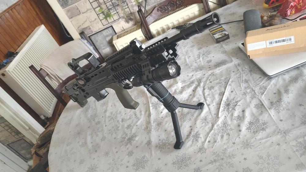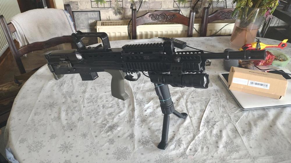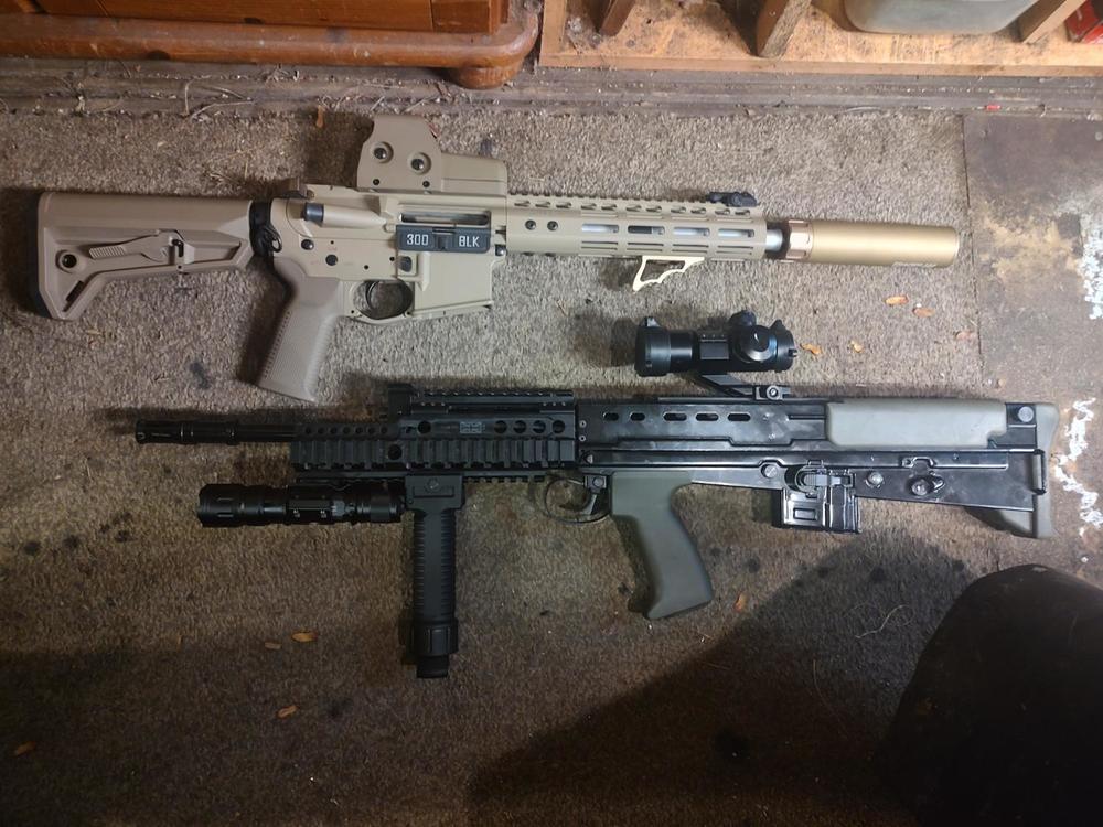 I have 2 batteries for each rif and chargers. Sa80 has 3 mags so does with the honey Badger. the torch will not be staying on the sa80