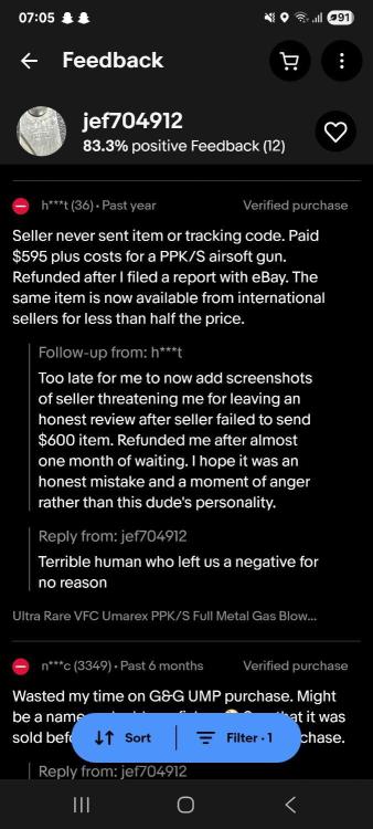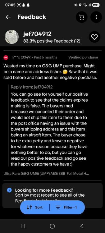 The fuck is this dude smoking? I had a quick sale listing for £280 for a GBB SR16 build with 6 mags. This dude offers me £170 for the gun, attachments and ONE magazine. We finalise on a deal where I offer £210 and said I'd throw an extra mag in. Cut to today, this geezer messages me saying I've essentially scammed him by nocking him down 7 mags? I don't even have 7 mags! Asking £210 for a GBB with 6 mags is beyond insane, especially for a listing that is asking £280 for it all. Wtf! The handguard I can understand, however it was mentioned in the listing that it was missing a grub screw. He's now threatening going to PayPal for a refund! How am I supposed to get out of this!