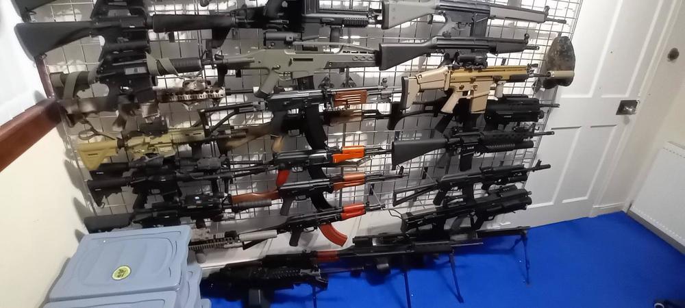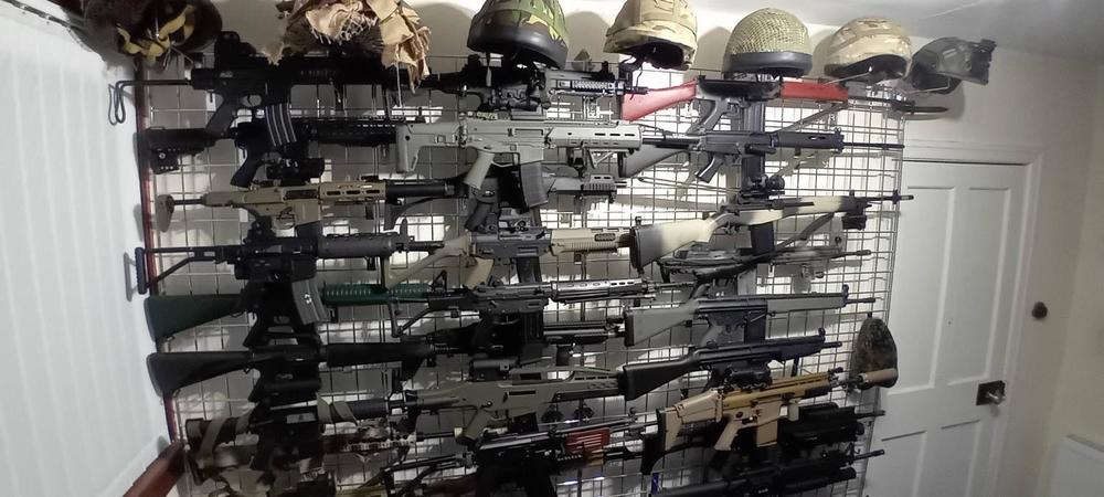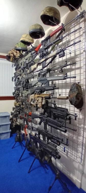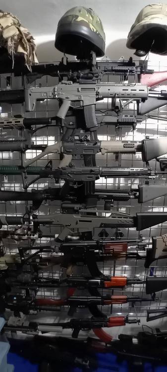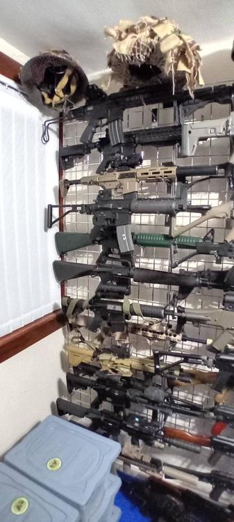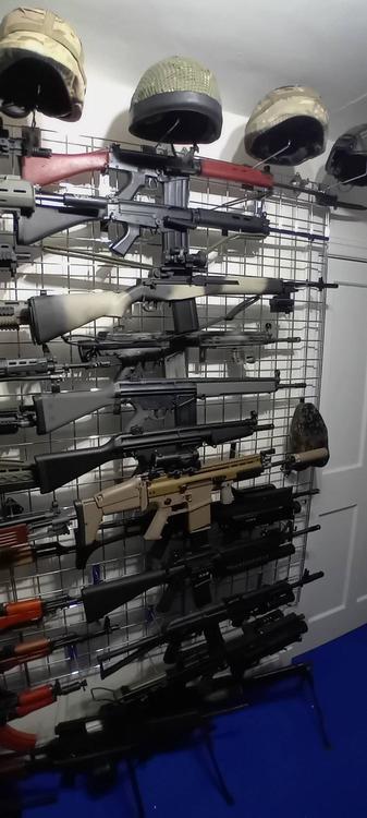 I really didn't like how my wall looked in the pics above so I spent some time today fixing it. Still need to find a place for a G36C, Scar-L both two tones that I'll rattle can some day & an M4 I'll just put behind my Mk18mod1.