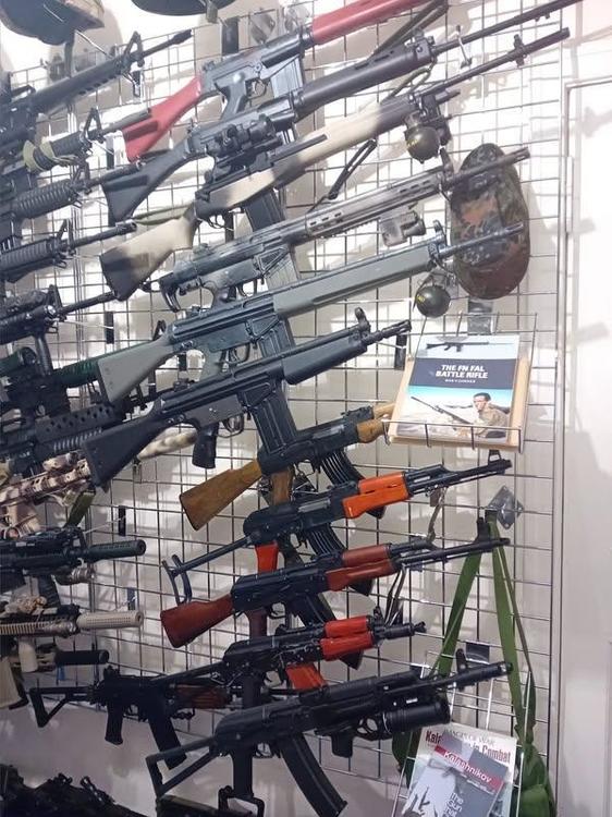 1. Too tired to post pics so... I don't have the detailed knowledge about the specifics of pews I have & those with a close or a tenious connection to the British armed forces, so be prewarned... what I think I have is potentially wrong/incorrect. L96A1/L115A1 springer, bought as a basic two-tone before my ukara & now painted to resemble the Green Meanie. L96A2/L115A2 springer, another cheap wallhanger I've rattle canned with a 'Kewl' desert pattern cam. L96/Arcti Warfare, left stock & un painted simply coz I like it as it is. SMLE mk3, springer, previously a tow-tone but cleaned up fairly well by the previous owner. Thompson 1921, a denix replica in full 'gangster' mode with 50 rnd drum mag. Thompson M1A1, a rattled ex two-tone which needs a much better paint job. Sten mk2, denix replica (weighs a bloody tonne, in fact all the denix stuff is heavy). MP5SD6, retractable stock, had one years ago & craved another one. MP5, hard stock. MP5, based on an Iranian Embassy pic with slim hand guard,retractable stock & humungeous SL-20XL torch on a crane mount. Mp5K Sterling mk4 L2A3, rubber prop, Cleaned a couple in the TA in my youff but never got the chance to fire one (as a chef in the ACC attached to the RA my spatula skills took priority). Steyr Aug, does the Falklands defence force count? EM2, rubber prop but cool as F*^k. L22A2, springer wallhanger. L85A2, with Daniel Defense hand guard, LLM01 & SUSAT L85A3, with fore grip/bipod & Elcan scope with RMR. L85A1, springer with iron sights & bayonet. L85A1, replica with susat & BFA. L85A2, with L123A1 UGL M230 GLM/UGL L131A1 glock17, does exactly what it says on the tin. L9A1 Browning High power. Sig Sauer L105A2 Sig 226, aquired a couple recently. M1911, got a few in different styles including a denix. M16A1, more of an VN than a UK. C8, Canadian version really. L1A1 with bayonet & wooden furniture, well it's really a rubber prop in need of a better paint job. L1A1, ares make. My first entry into airsoft (second time round), Love it as it was my personal weapon in the TA. L86A2, yeah I like bullpups 18 in total. Most have scopes/sights accessories to a certain degree, & lots of slings boxed away(most slings look messy on wallhangers IMO). I'm sure more of my collection have a link to UK armed forces but with even more tenious links than those above.