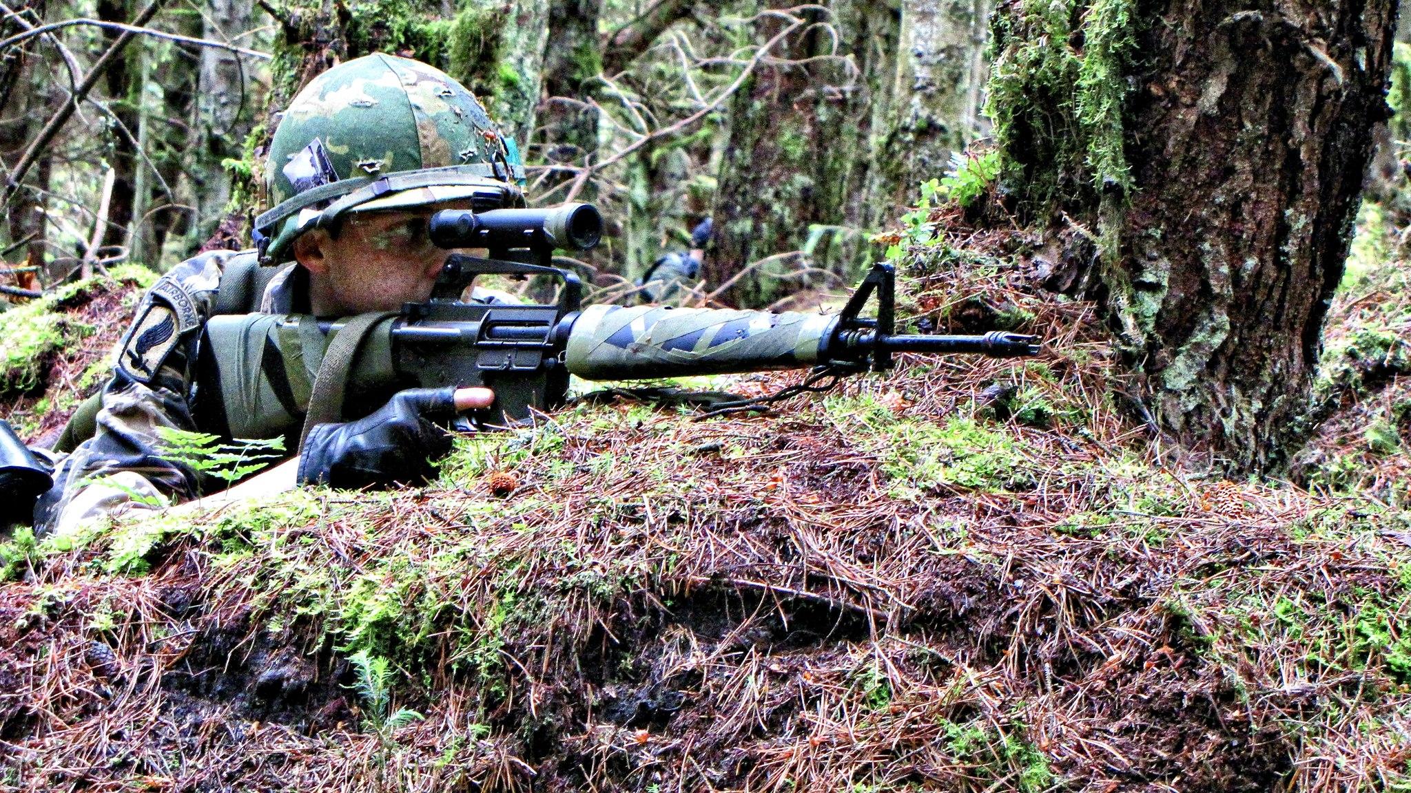 Recent-ish pic of my CAR-15 and delta force kit. Shortly after I went up to my elbows in a ditch and got the gun thouroughly soaked. Had to give it a good airing out in the sun on the dashboard for the rest of the gameday!?