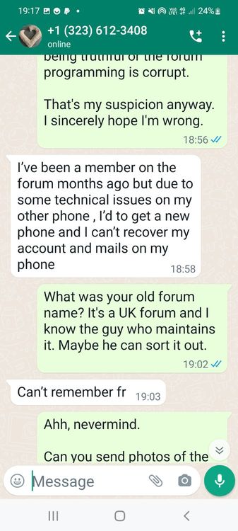 As I suspected, BLINDSPOT is indeed a scammer. His phone number is based in Los Angeles, America. His story didn't add up and when he sent me a photo of the item.he was selling, it was from a Google search dated 2015. There is bad language in the screen grabs. Sorry. I forgot to add this image which shows where he lifted the image from.