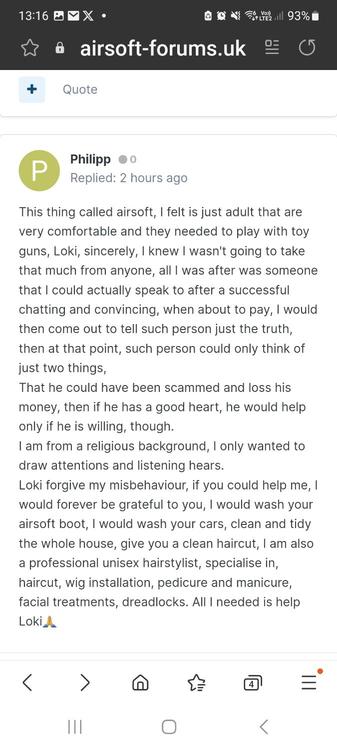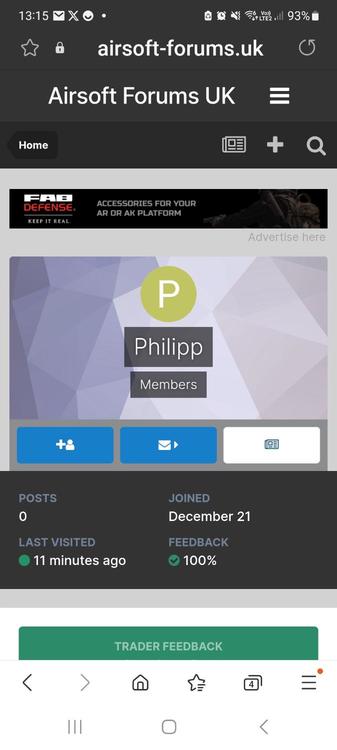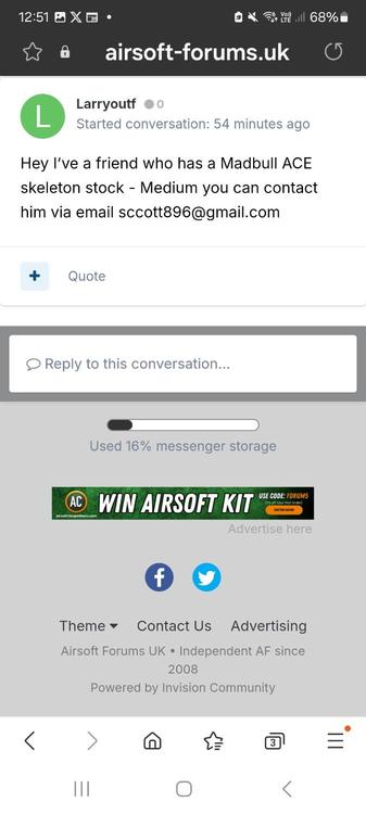 User Larryoutf is clearly a scammer. He messages people's wanted adverts with the email for his "friend" who has the item. It is the same generic message, regardless of item and is a proven, tried and tested method seen across many forums, not just airsoft. How do we report these accounts and protect genuine forum members?