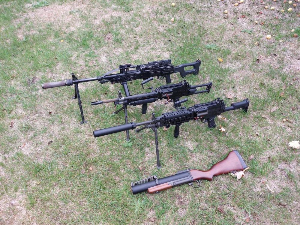 So, just to add. I've since had a few new pieces join the collection. The L130A1 This is the 7.62mm variant of the FN minimi. This system was only ever in use with UKSF/SFSG, and has been used for some time. These are usually seen with a TA01 with RMR, LA5 peq and a green LBT box mag. There are a few differences between the UK version and US version (MK48). GAS BLOCK/REG The US version uses the 7.62 type, while the UK version uses the older Minimi type, with even a MK1 type gas regulator knob. BIPOD US version uses the new improved style, while UK uses older type. RAILED HANDGUARD There are 2 US types. The improved tri rail or the older MK46 style over barrel rail. The UK version is similar to the KAC type tri rail. BOX MAG MOUNT Now I'm not entirely sure what this plate is there for. But the US version has a 2 holed plate, that sits underneath the feed tray. This is not present on the UK version. MARKINGS The US version has MK48 markings on the right sight, just before the stock. The UK version just has the standard minimi type markings, but marked for 7.62. My version is a Lambda defence version. Has a few things that need addressing A few holes left in the receiver from manufacturer. Clean up some of the rusty parts. Spray the receiver a satin black as issued. Try and source a green box mag, or try dying the one I have potentially. And to source a TA01 acog. Next up. M79 Some people don't realise, this particular weapon has been used by the British since the 70s in Northern Ireland, and one or two pictured during the falklands. These were later replace by the HK69 launchers. The British version came with a fibre glass stock. Not the wooden one issued to US forces. Most were seen using SLR slings too. Lastly. The L109A1. It's a SIG P230. This was sigs answer to the Walther PP/PPK & P5. This was issued to SAS as a concealed carry both on covert ops and for personal protection when in plain clothes. Other than that, not alot is known about this little pistol. There were also rumours this was issued to helicopter crews along with the Walther P5's. But the guys I know, who were in the RAF, only ever saw the walther P5's issued at the time. Mine is the old KSC P230JP version. Only down side, is that it's plastic bodied. But for a small pistol, is extremely comfortable. I'm really not sure what to do with this, other than leave it stock. As haven't seen any pics of issued ones to getting it looking authentic.