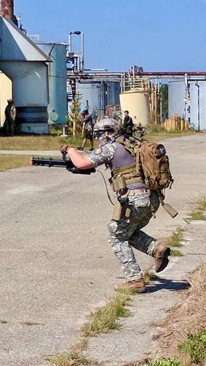 As someone who was both at the event in question, and just a few dozen meters from that dude, it was a bit different than that. First, it was a Taginn Paladin chalk round - a round that IMO should never be shot at personnel. Second, he was either the gunner or in the door of the vic - vics are absolutely allowed to be direct impacted, and it’s recommended as a non-explosive round doesn’t have a kill radius and it’s far harder to land a round within 3m of a vic than it is to actually hit one. Third, the hit was hard enough to destroy his eyepro. Fourth, he was a real trooper and after getting cleaned up, went to the on-site store, bought himself a new pair of eyepro, and got back in the game. It was Op Stonebreaker 2021 or 22. That was the last Op I went to before getting ASFPUK or DMFP masks for some added face protection after seeing that hit. I’ve taken direct impacts from the explosive Taginns and they aren’t too bad - though I wouldn’t want the frag on bare skin. Heres a pic from the event; Im on the left with the Tropentarn , helmet, and TK45c.