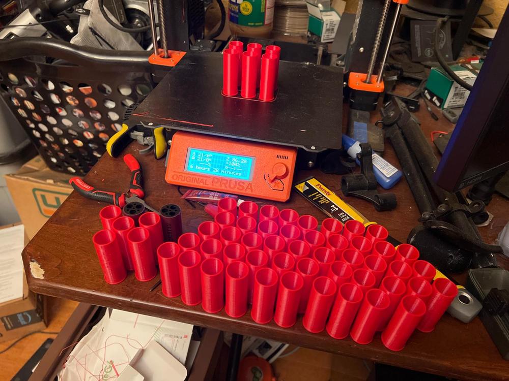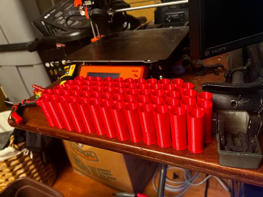Done a few projects in the meantime. First, I *finally* found a Kaiju; the gun that originally got me into new-gen KWAs before the seller backed out and I ended up buying my Black Cherry TK45 a few years back. Well, now I have the Kaiju as well after all these years. It was a store display model too so its like new, and the seller had a set of mags cerakoted to match, so I have the full set of 7. I have also worked out all the kinks on my converted APS CAM870 mk2. Mods include a bunch of dremelling to take a HPA tap, cutting through a QD sling point to route the line, two MatchSavers mounted to the side of the new Magpul handguard for quick topping off, some modifications to fit both a APS shell-catcher and top rail, a +1 printed mag tube extension, and some smaller bits and pieces scattered throughout. I also have been working with biodegradable filaments to print short-lifespan shotshells that can be fired and left behind; the bio PETG works decently but I want to try the algae-based PLA as well. Here it is in action: IMG-7666.mov And the tons of shells Ive been printing and testing: