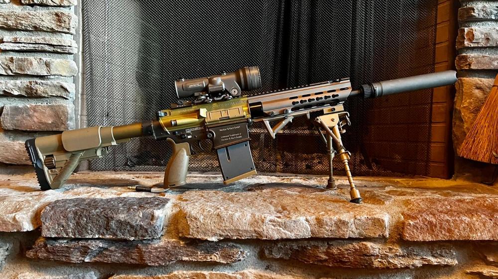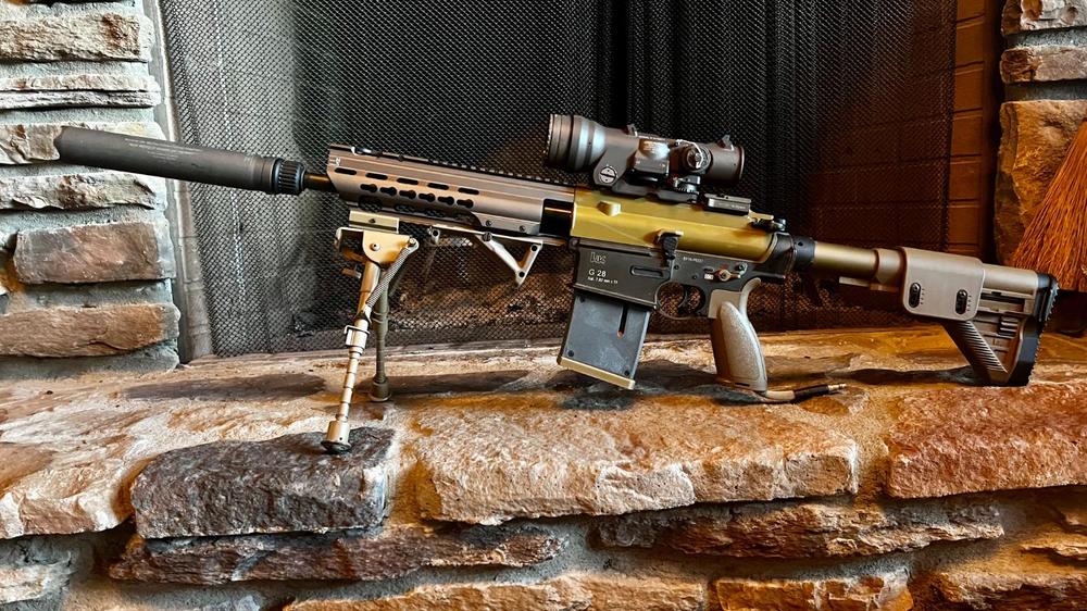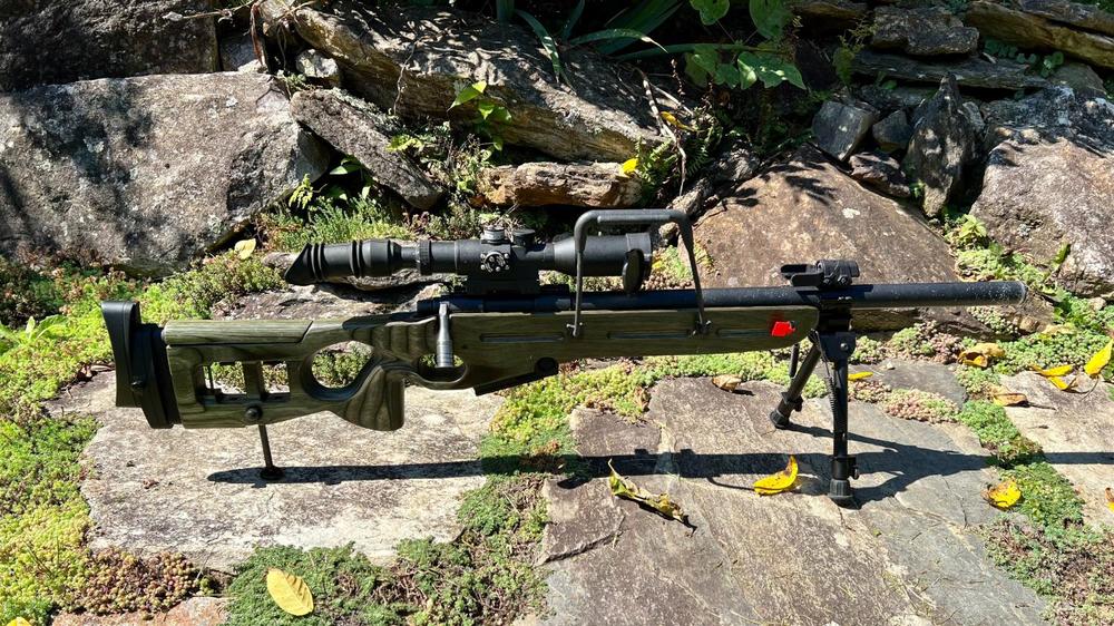 Just finished my second VSR-X build. VSR-X base, Maple Leaf MLC-S2 chassis, TRYBE 3-18x50 scope, Black Collar Arms Priapus Grip with brown grip tape, MidTen Mlok Bipod, Vortex Optics bubble level, Victoptics 1.93" scope mount, Novritsch A3 Amber leaf kit, Runcam2 4k 35mm, BrainExploder RunCam Picatinny mount, Maple Leaf MLC spare mag holder (faux magazine), Maple Leaf TDC top rail mount (TDC disabled since VSR-Xs dont have those), heavily-modified ActionArmy 50rnd VSR mags. Built for a lower power, lighter weight Scout Sniper kit than my other CSR-X, which shoots about 3.2J. This one’s more like 2.5J. All the leaves are somewhat-easily removable should I want to convert it to a more Urban build. Shoots BBs as heavy as .69gs, lowest it'll run on is about .46gs. I have a new Flecktarn uniform to pair with it for some lighter weight sniping; I tried lightweight kits for the first time last year and whew do the knees like it. Full kit should be done in about a week.