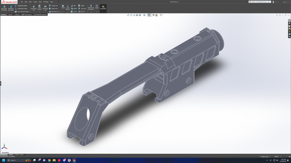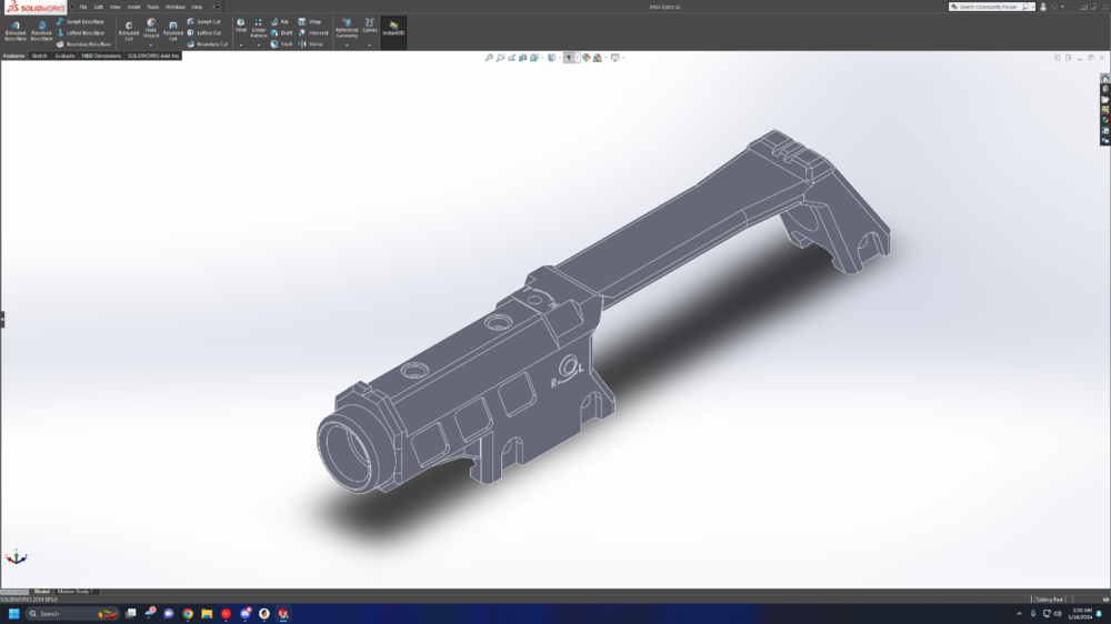 Update on the MG4 optic: it works, and looks damn good on there. Even at 15% infill the PETG I used is very strong, and I was able to use it as a functional carry handle. Granted the MG4 is very light for a LMG and it’s currently empty, but still surprisingly it didn’t just crumble in half. I’ll probably sleep on the design and if I can’t find any faults with it tomorrow I’ll send for it to be printed in SLS for a “production” model.