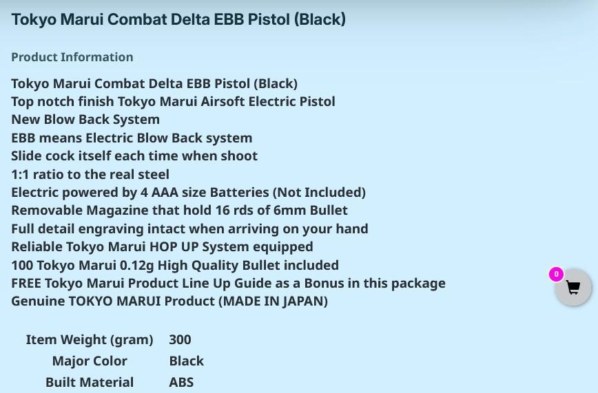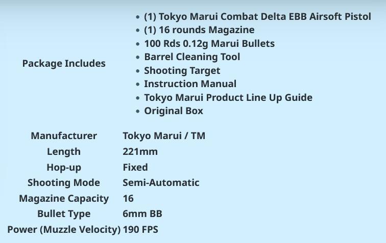 Brutuz Posted 11 hours ago Posted 11 hours ago A Tokyo Marui Combat Delta EBB? I had never heard of this one. There appears to be a line-up of TM AAA battery powered 6mm airsoft pistols. I had to have one in my modest collection and opted for a 1911 copy. Got it from a German airsoft store. It's not expensive, the plastic is rather toy grade. Performance is toy-grade as well. It only dented the paper target I used for testing. It's a can plinker. Glad I got one 😉 Galvatron and ButcherBill 2