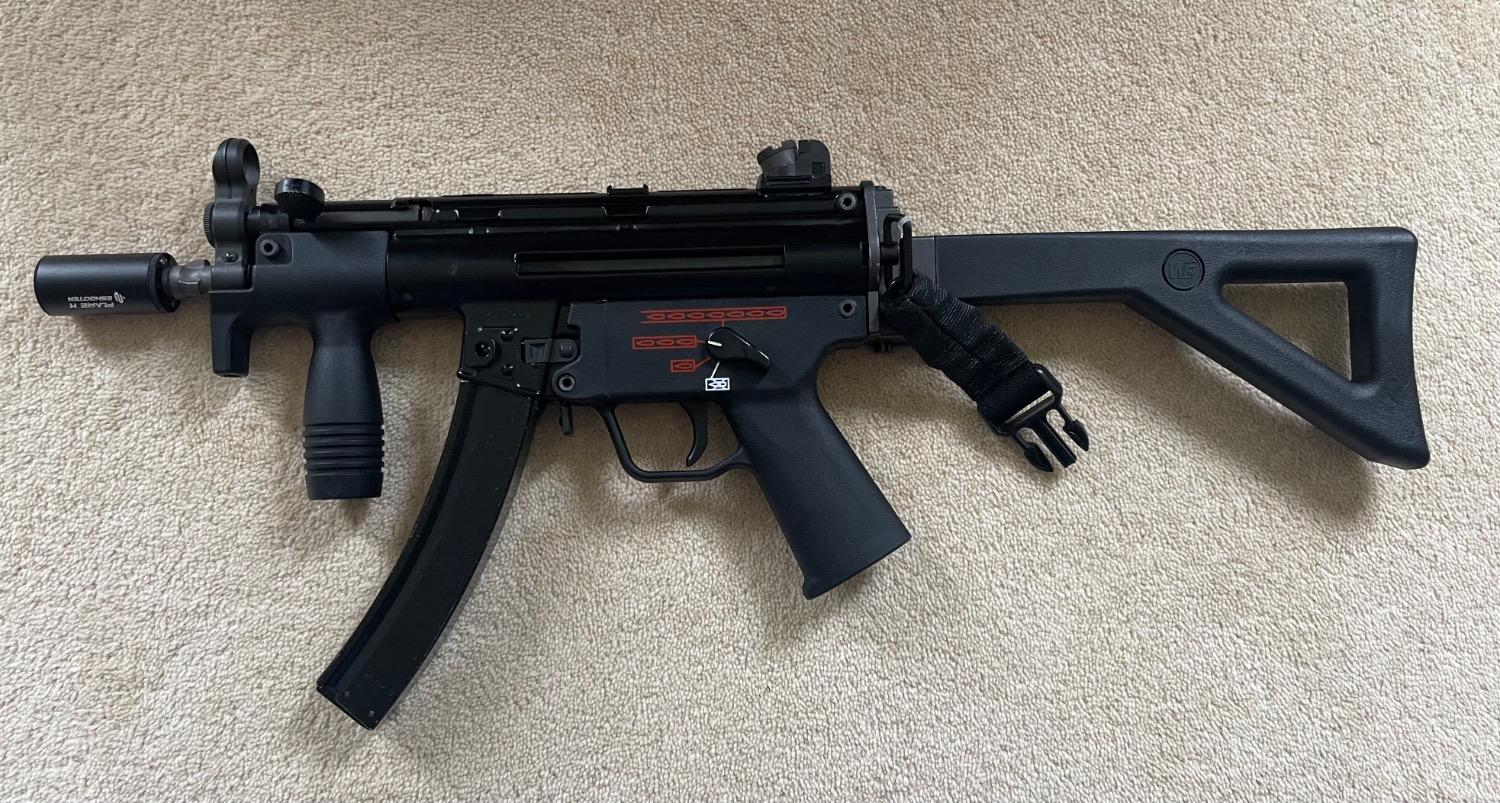 Baser Posted 3 hours ago Posted 3 hours ago Having a morning playing around with toys. 1st purchased a couple of weeks ago, WE Apache MP5K. Lovely gun, spotless condition came with 5 mags to give me enough to field a whole game (with the other 3 I already have). Local site have opened an indoor CQB and I think this is the coolest way to play the game. I have added an e-shooter tracer unit for the full laser beam effect 2nd Completed the DMR upgrade to the LCT G3, maple leaf 6.02 510mm stainless barrel, 4uantum hop rubber and nub and m130 spring. Shooting 1.88J on .36 BB’s like a laser. Had the selector modified to only shoot semi. After a couple of games it decided to shoot only full auto? Modified the trigger contacts as it was arcing giving the full auto then it decided not to fire at all. Now fitted a e shooter mosfet to solve those problems and now it’s shooting very well with a very short trigger pull. Modernised with the LCT m lok handguard and an unknown fore grip from the box of parts, trying to make this monster easier to handle, might look at adding a small bipod to the front but not convinced it will get used and just add weight? Any thoughts? 3rd WE Apache MP5, modernised with a Cyma m lok handguard to keep it looking like the G3. Had to modify it with a hacksaw to make it fit, like the look and it gives me options for torches and tracers for CQB or fore grips for woodland. HZR13 and Colin Allen 2